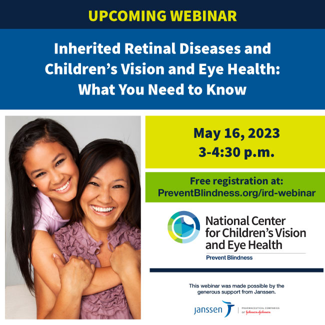 Register at https://nationalcenter.preventblindness.org/events/inherited-retinal-diseases-webinar-51623/